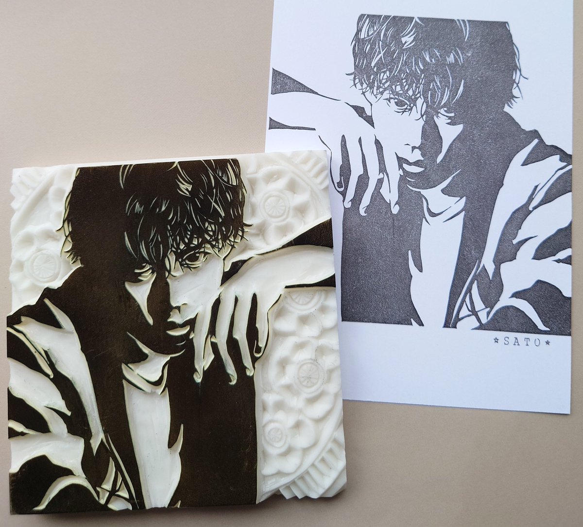 ほんとに久しぶりにハンコ完成させた!!にやま先生の『そんなに言うなら抱いてやる』めっちゃくちゃすきで!!作ってしまいました!!ニンニンのエロ黒子もちゃんとあります✨ 続編始まって嬉しい🥳💕🎉 #そんなに言うなら抱いてやる #消しゴムはんこ #ファンアート
