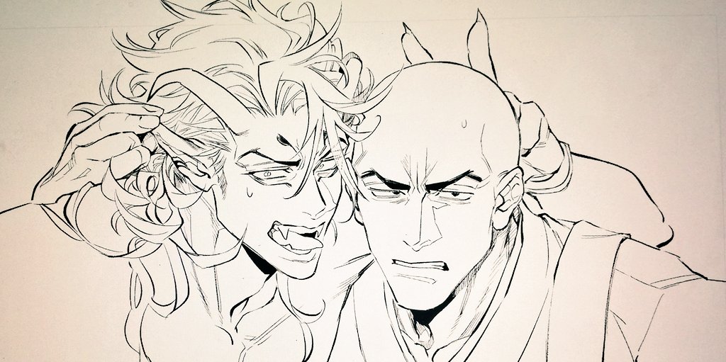#商業BL #BLACK坊主とPINK淫魔 #サキラ なんか……すごい良い感じの線画ができてしまって、担当氏に相談した結果書店特典はモノクロからカラーイラストに変更して貰いました!⸜( ᐛ )⸝ お楽しみによ〜!!!!