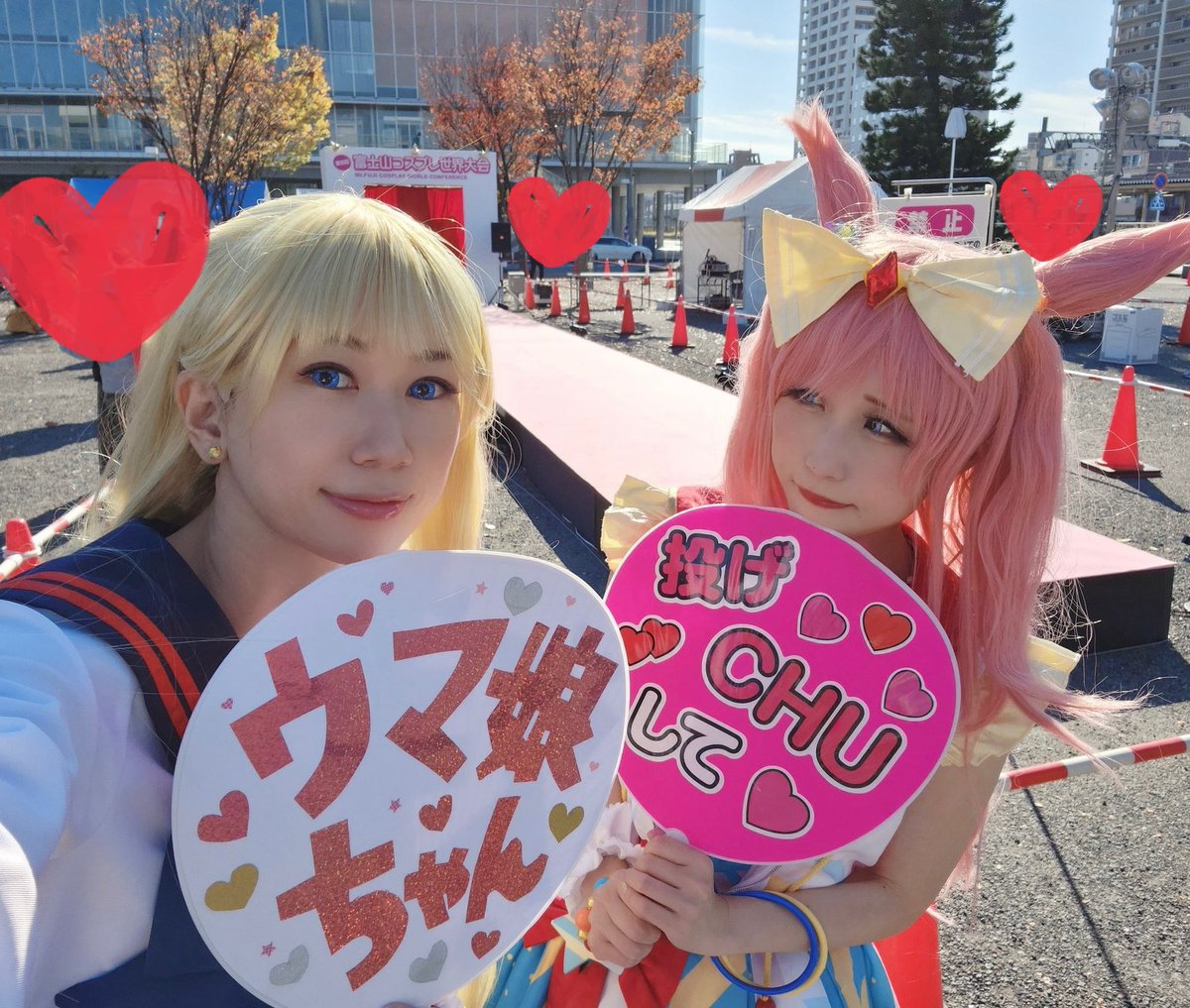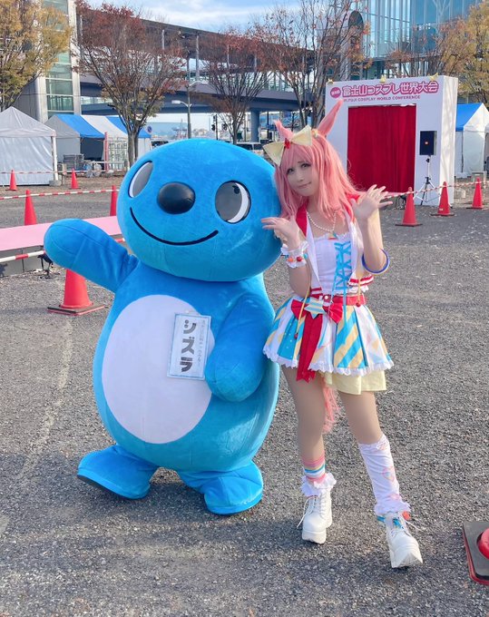 #富士コス 楽しかった〜久々にお会いできた方もいっぱいで嬉しかったです!そして雨の中パフォ見て下さった方々もありがとうございました!雨降っててすごく大変だったのに、皆様手拍子やペンライトで盛り上げてくださって、私もテンションマックスでした!ありがとうのかしこま!
