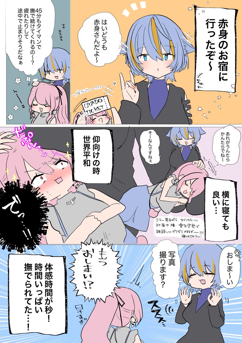51 126 赤身さんが撫でまくってくれる個人イベント 【なで屋】赤身のお宿に当たったので行って来たよ 長時間人に撫でられることってなかなか無いから確約された撫でを求めてる方は次の営業日のお知らせが来たら応募だ! 赤身さんの指はPB入っててぷにぷにするから楽しいぞ! #赤身のお宿 #VRchat #VRC漫画 23/05/23 17:57