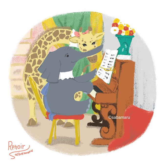 美術館シリーズ🎨『ピアノを弾く少女たち」 昔から、元々の絵画を目にしていたので、オマージュしたくなりました🥳 #絵の世界 #イラスト #絵描きさんと繋がりたい #illustration #動物イラスト #ArtistOnTwitter