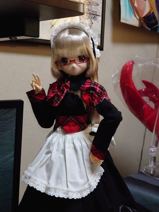 おはようございます 夜勤から帰宅してます~ 赤メガネになってかわいさマシマシのリセちゃん #おはドル #アゾカツ #うちのこかわいい