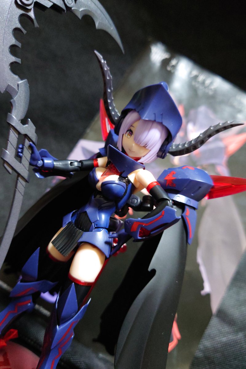 エクスキューショナー 一通り完成した あとはデカール貼りだ ショルダーアーマーとマントの取り付けは背中に変えてあります #メガミデバイス