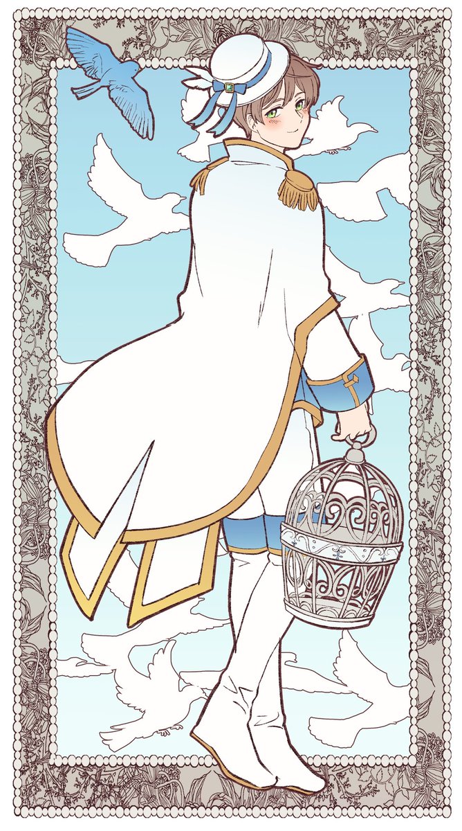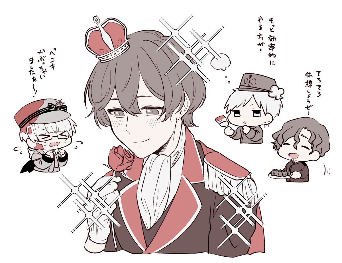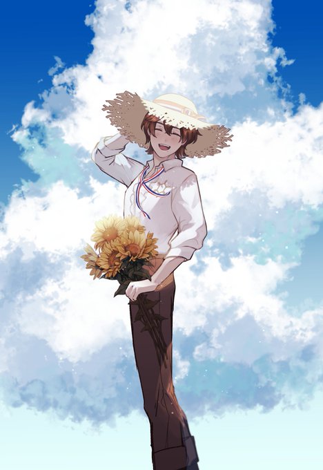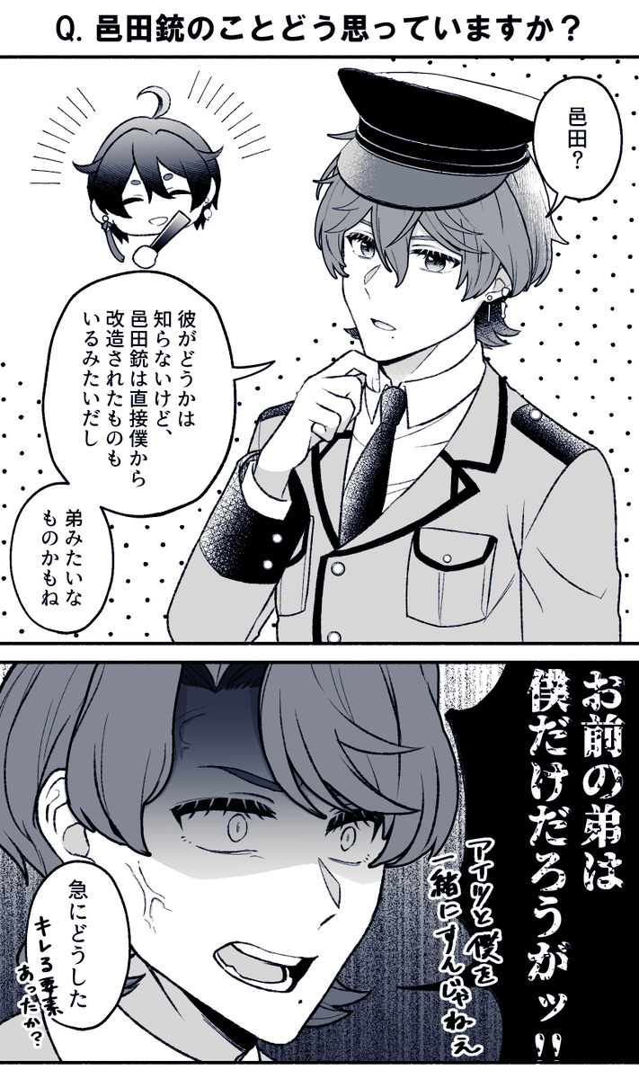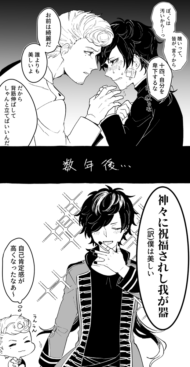 126 686 ひとじゅし/獄十 自己肯定感めちゃ低の十四君を励ましまくってナルシストにした天国さんの絵です 19/11/09 15:13