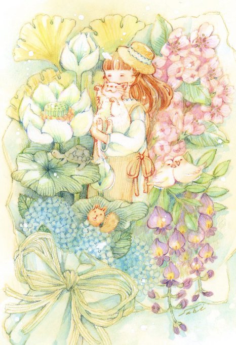 「 川辺の天使たち 」 散歩によく行く川辺に咲いていた 花たちを描きました。 「しろつめ草」「カタバミ」「ナズナ」どの子も可憐で小さめの花たちです💐 のどかな川辺の気持ち良い空気を感じてもらえたら嬉しいです。 #メルメリィアンテナShop