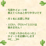 #似顔絵 #絵描きさんと繋がりたい フォロワー500人以上の方限定🌵 アイコンのイラストを【無料で】描きます! 🌵似顔絵のリクエストもOK👍 🌵2月まで 🌵先着2名 「アイコン作ってほしい!」という方、リプまたはDMで気軽にどうぞ😊 これまでフォロワーさんにプレゼントした画像や備考はコチラ↓