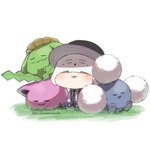 443 7265 お題箱より「ハネッコとワタッコに挟まれて寝ているトラゾーさん」 せっかくだからポポッコも添えた。 23/03/14 18:31