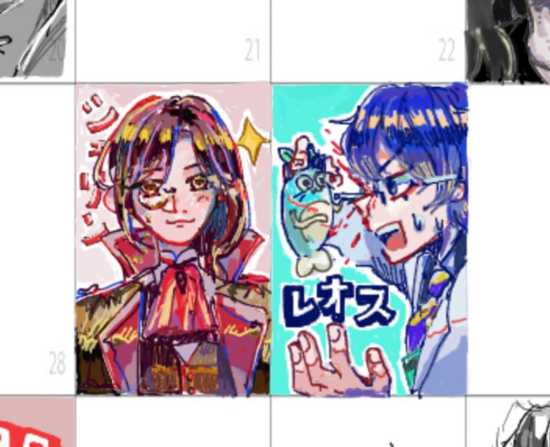 3 57 レオス描くと彩度爆上げになるのどうして #シェリンの証拠品 #まめねことレオス #社築納品物 22/08/21 21:29