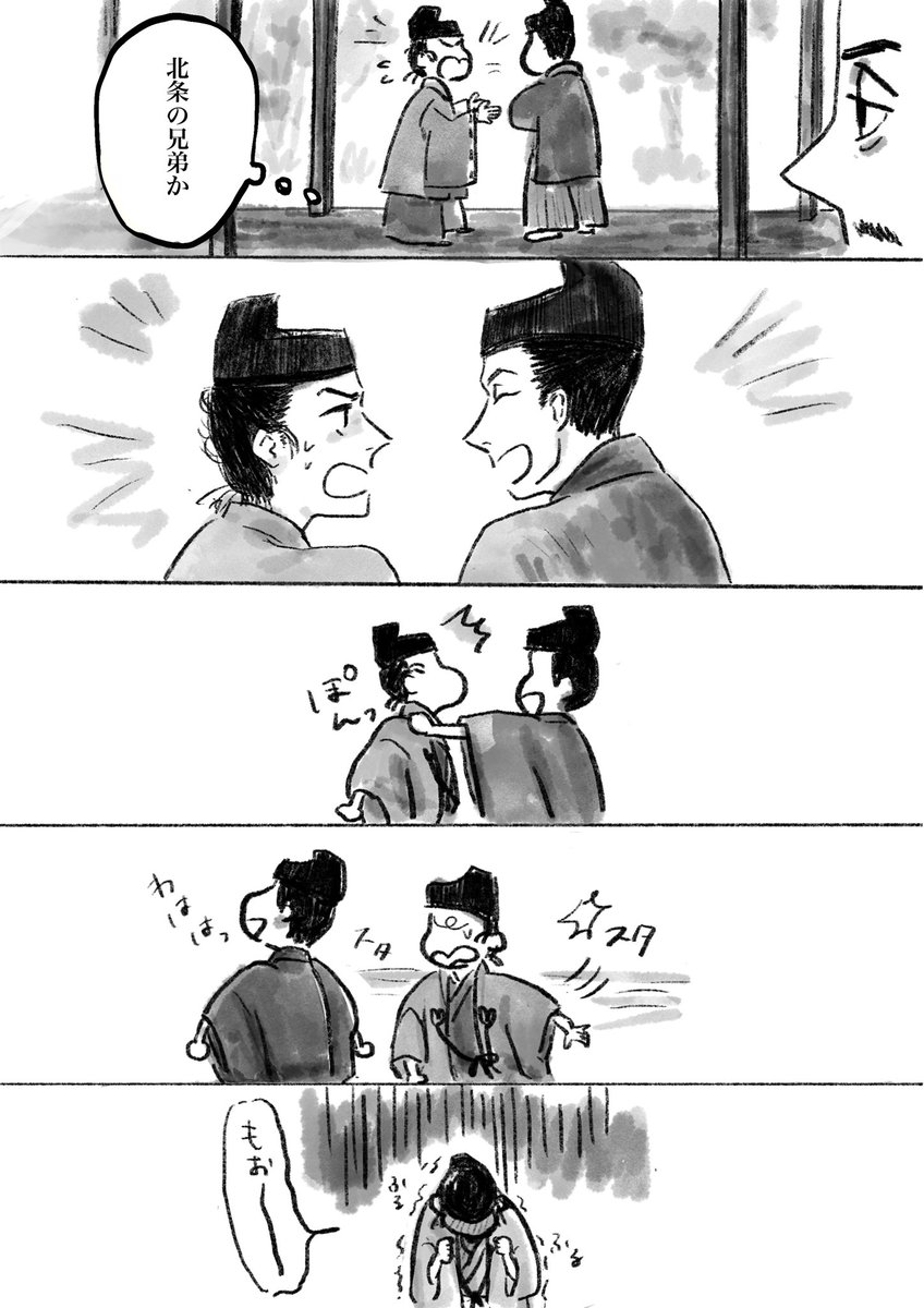 「教えてしまいました」小四郎のかわいさよ…。 そういう正直でちょっとお馬鹿さんなところが平六もほっとけないんだね…でも平六もお馬鹿…盟友コンビはどっちもボケでツッコミなのが良いですね…! #殿絵 #鎌倉絵 #鎌倉殿の13人