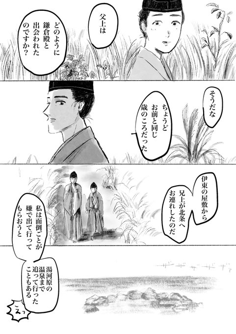 頼朝の弟のまんが 小四郎を誑かすために弟認定してから長い月日を経て、嘘も誠心誠意つけば誠になる、という頼朝の性質を知った上でも、頼朝が死んでキッチリ悲しくなっている自分は、本当に彼の弟になってしまったんだな…と自覚したのでは??くそっ😭ぜんぶ大泉のせいだー! #鎌倉殿の13人 #殿絵