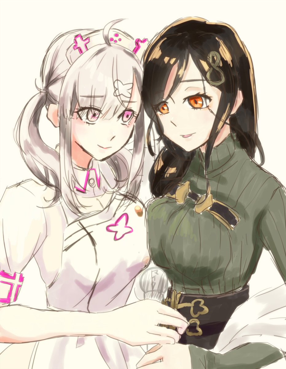 クロスオーバー注意 スカルガールズのヴァレンタインとすこやで衣装交換💗❤️ ナース繋がり😉 #いらすこや