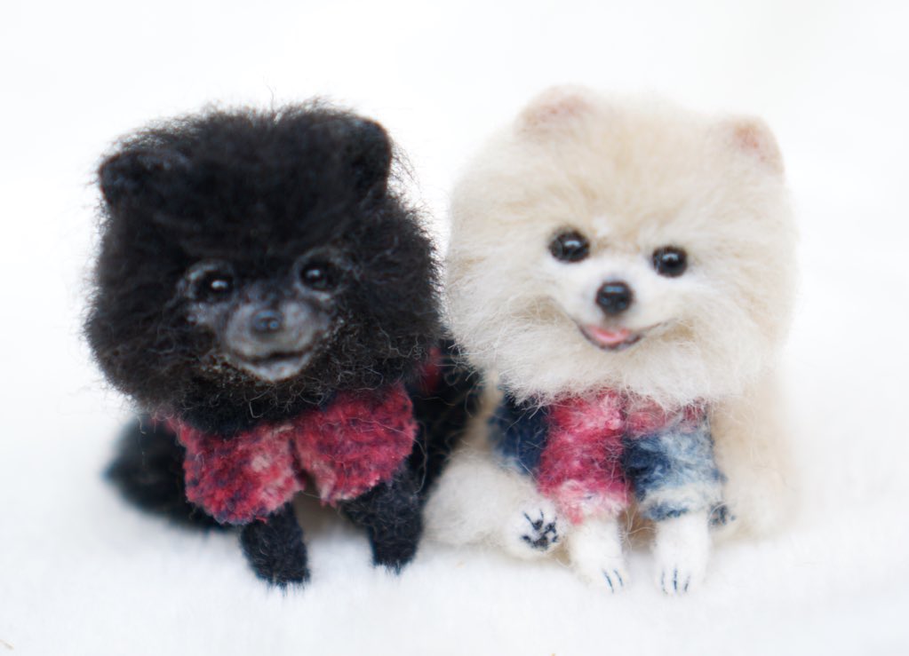 6.5cmのおチビポメちゃんにお友達の黒ポメちゃんが誕生しました。 ちっちゃな子ってほんと可愛い🥰 2月の展示会(静岡)に向けて小さな自由作品のわんこたちを作っています。 #羊毛フェルト #needlefelt
