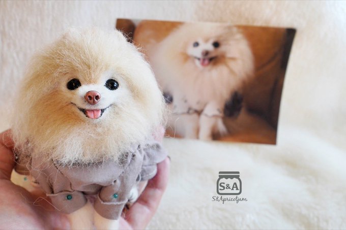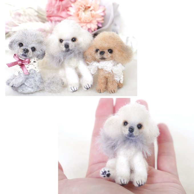 #誰か優しい人が拡散してくれてフォロワーさんが増えるらしいけど別に増えなくても良いから見るだけ見て欲しい 羊毛やアクリル、本物の犬の毛などを使って小さなわんこを作っています。 この子達は2月の沼津の展示会へ連れていきます☺️ #羊毛フェルト #needlefelt