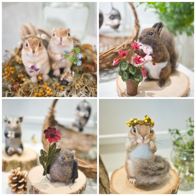 今この子達がお邪魔しているWeekend books様が撮ってくれたお写真です。 みんな7cm位の小さな子達です。 #ふわふわのほわほわ4 でお家を探します。 #羊毛フェルト #needlefelt
