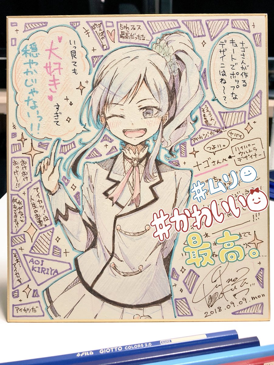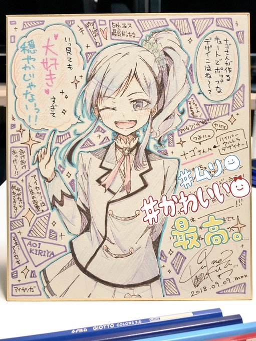 55 216 いつもデザインとかでお世話になってるナゴさんに、霧矢さん家のあおいちゃん描きました✌️😌✨ 18/09/10 11:07