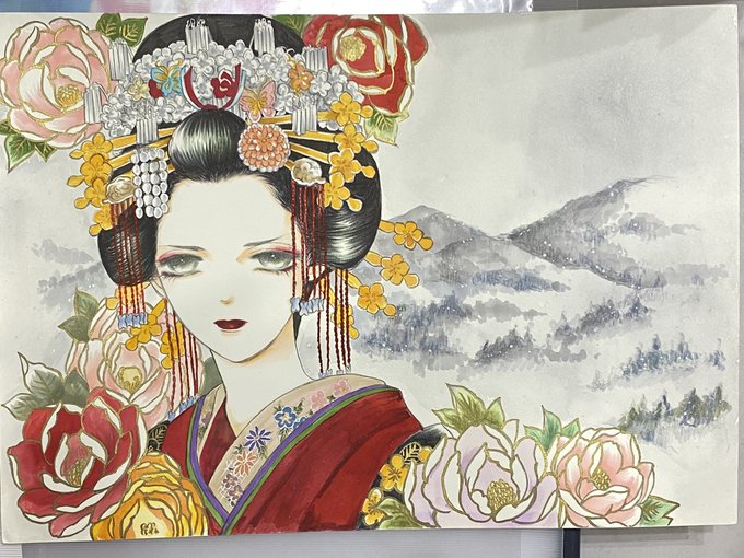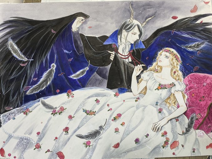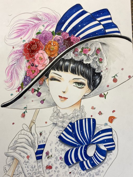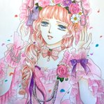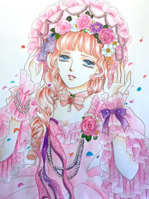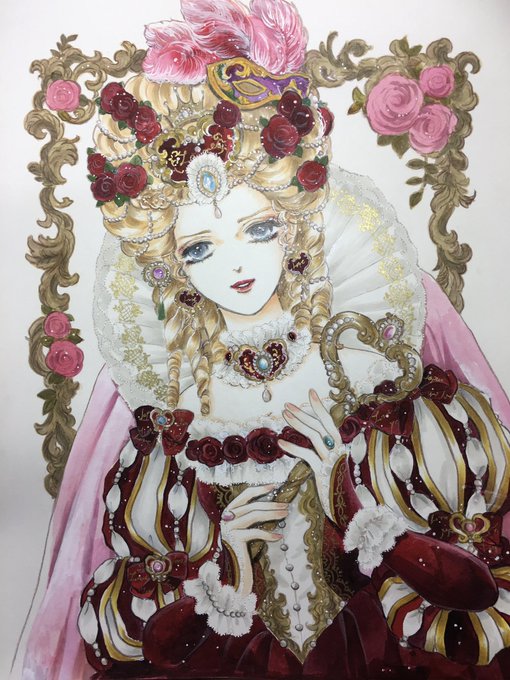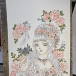 #昭和生まれの絵描きさんの絵を魅せて もう今風に絵柄変える努力は諦めてます😂 デビューの頃は学園物全盛期。巡り巡ってやっと憧れのお姫様物時代到来🌹ド・ショウワな絵柄で描きまくってたらエリザベス2世のお仕事いただけました🙇♀️4枚目が最新作 bbケント紙製造終了でスケブに描く作画用紙難民😂