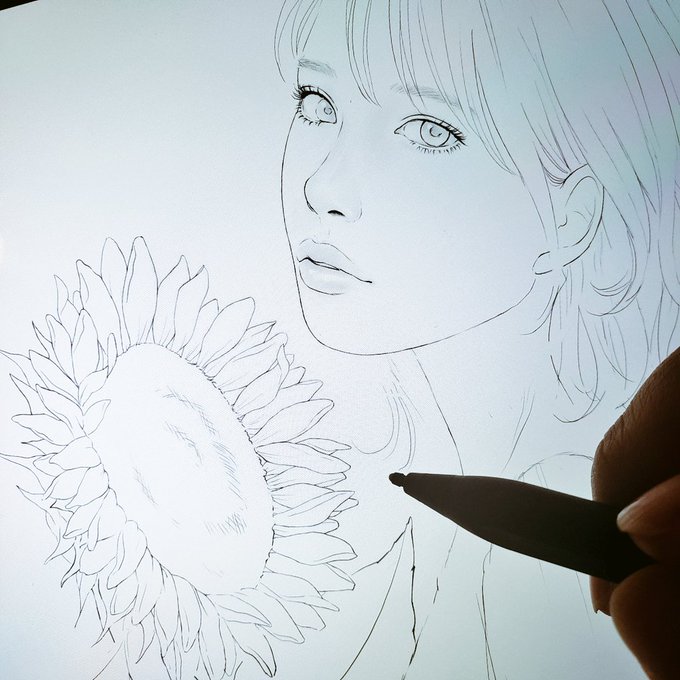 明日には終わらせる! 絶対終わらせる!! (向日葵の花びら描きすぎっていう噂がある...🙄🙄🙄) #イラスト #クリスタ #夏のイラスト