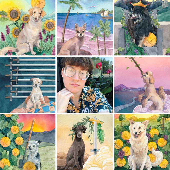 Finally did this #artvsartist meme! Mostly dogs this year, since I was wrapping up my dog tarot deck. 🥰 #dogart #watercolorpainting #artvsartist2021