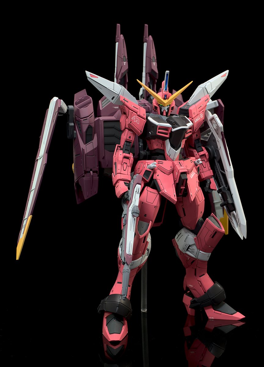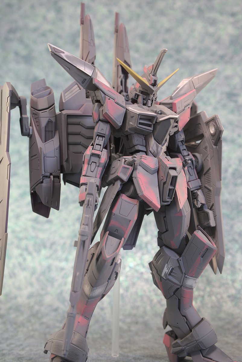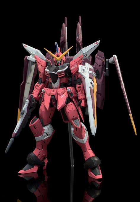 MGジャスティス、完成です^^ MGフリーダムを製作したときに感じたモヤモヤを一蹴する仕上がりになりました。 複雑な面構成とモールドが多いため、かなり厄介なキットです^^;
