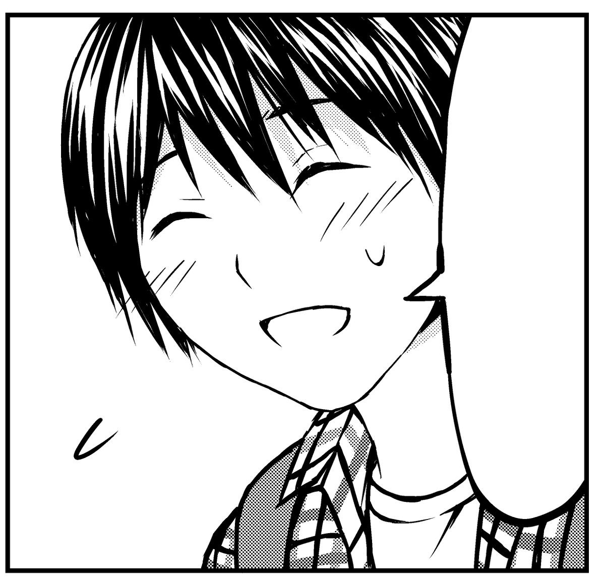 この6コマ完成しました(1枚目の2コマ目はまえにTwitterに載せたやつです) チェックの服着た自分を三脚(スマホ)で撮った写真を見つつ描きました。手も(男なので女性の手にするのてこずりました) キャラのバックのトーンは作画後半、全体見て必要と思ったら貼ります。 完成合計6コマ