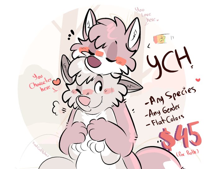 YCH "Sweet Snuggle" -Open-!🐾✨ -Flatcolors🎨 -$45 usd, only paypal -Any Gender/Species🦊🦨🦝🐶😺 -unlimited slots -Wait time 1-10 days! -"🔁 and ❤️"are highly appreciated If you are interested send me a dm!!