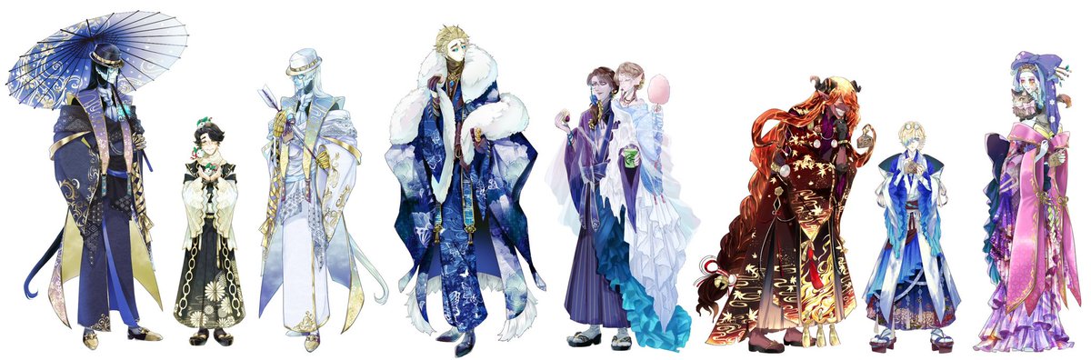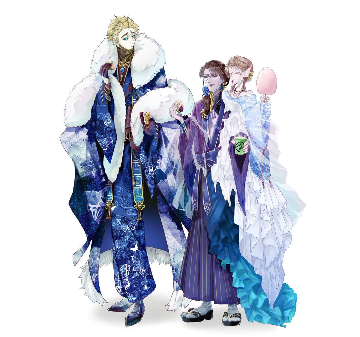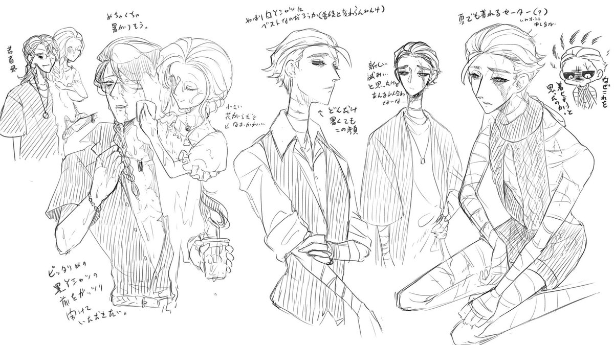 甘味組の夏服を考えてた アルヴァさんにはタートルネックのセーター着せたい人間だから夏服のイメージがあまりなくてだな…