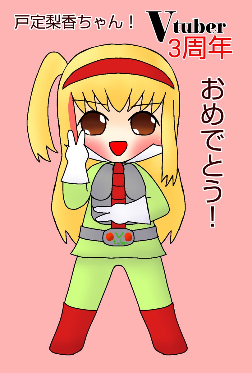 少し早めだけど、4/14は戸定梨香ちゃんVtuberデビュー3周年おめでとう!Vtuber3周年…V3周年…ブイ…ブイスリャァァァァってことで、V3な梨香ちゃん。 #とじょりんアート とじょりんライダー知らなくても気にしない。なお、このイラストはAIくんからの3周年記念のアドバイスを全部無視して描きました twitter.com/sadosenshi1222…