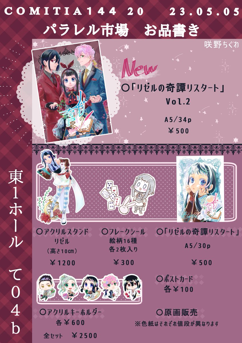 2023.05.21の関西コミティアのお品書きです~! サークル名:パラレル市場 スペースNO.A-05 色紙もでき次第リプツリーにて繋げます! 良かったら遊びに来てください~!スペースにてお待ちしております!✨ #関西コミティア67 #お品書き #関西コミティア