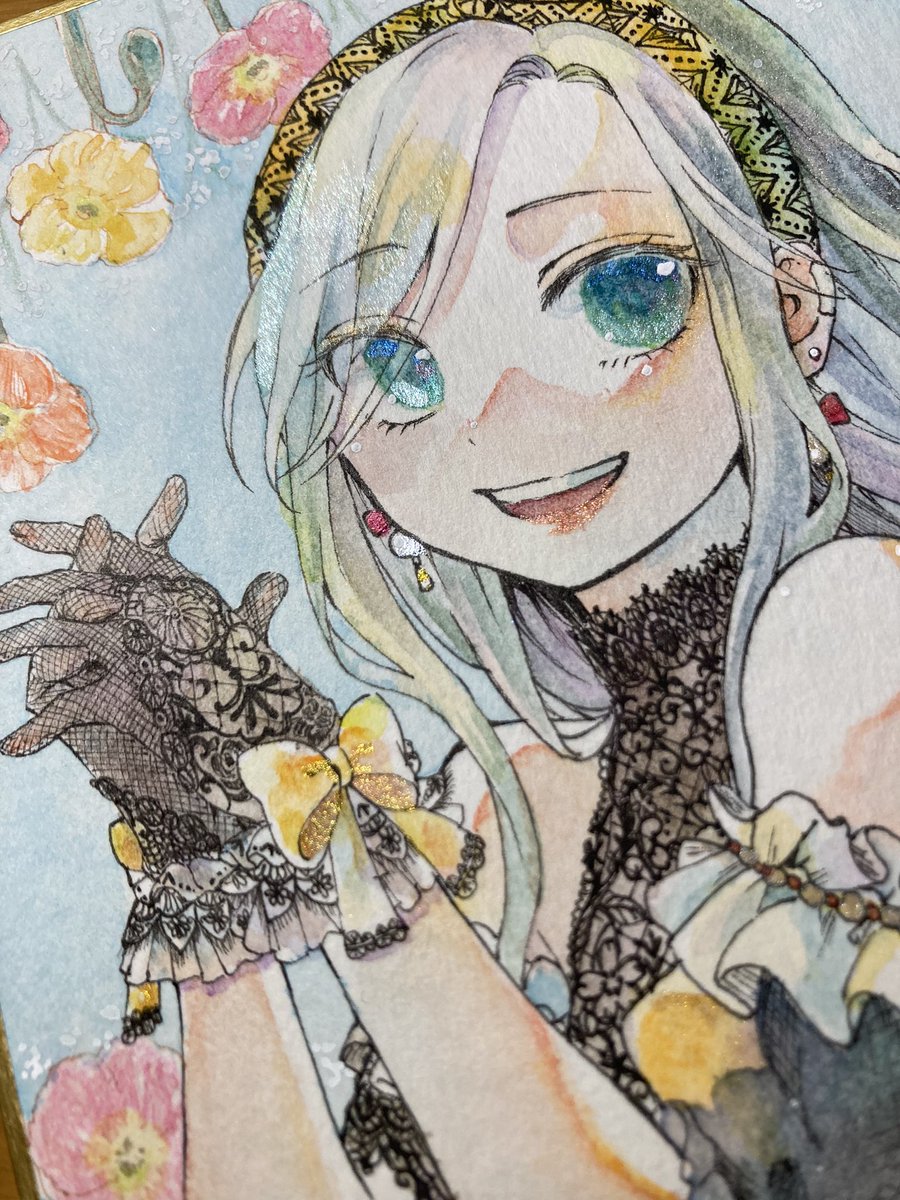 【原画販売】 コミティアでの原画販売予定のミニ色紙第二弾です🌸 こちらも春っぽくキラキラ可愛いになりました☺️✨ ¥7,000になります! キラキラ原画見るだけでも遊びにきてね☺️💪 #コミティア144 #COMITIA144