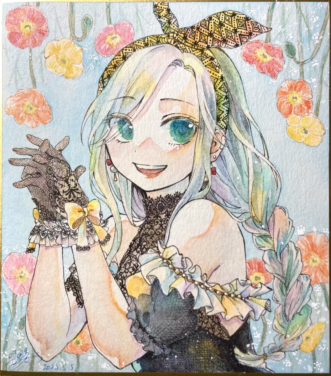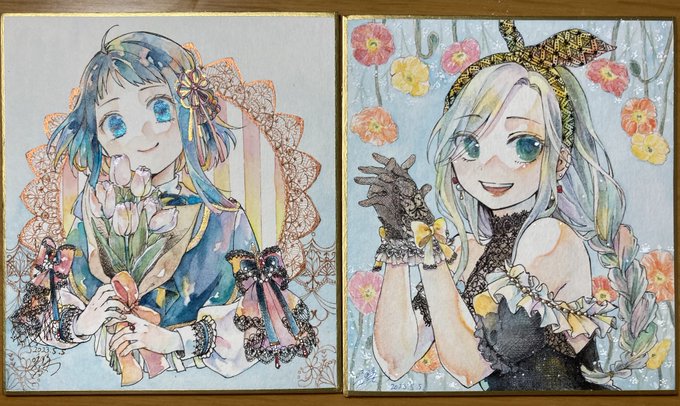 【原画販売】 コミティアでの原画販売のミニ色紙です〜 春っぽくて可愛いのができました💪 ¥7,000になります! きらきらで可愛いので見るだけでも良ければ🌷✨ #コミティア144 #COMITIA144
