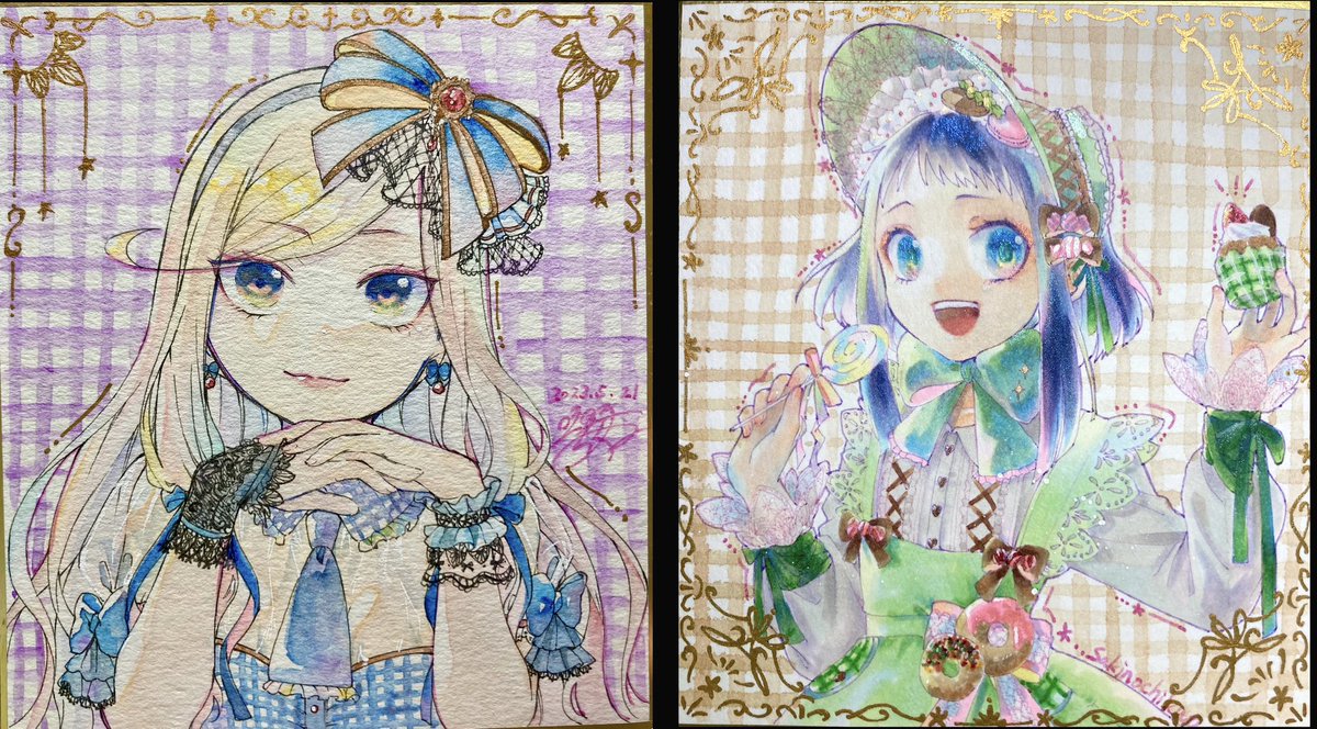 【原画販売】 関西コミティアに持っていく色紙ができました〜! スイーツロリータ リゼルちゃん🧁🍭 こちらも¥7000になりますが、きらきらなのでよかったら見るだけでも遊びに来てくださいね✨ #関西コミティア67