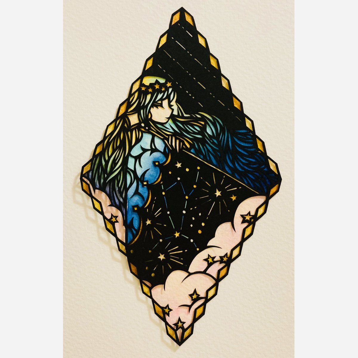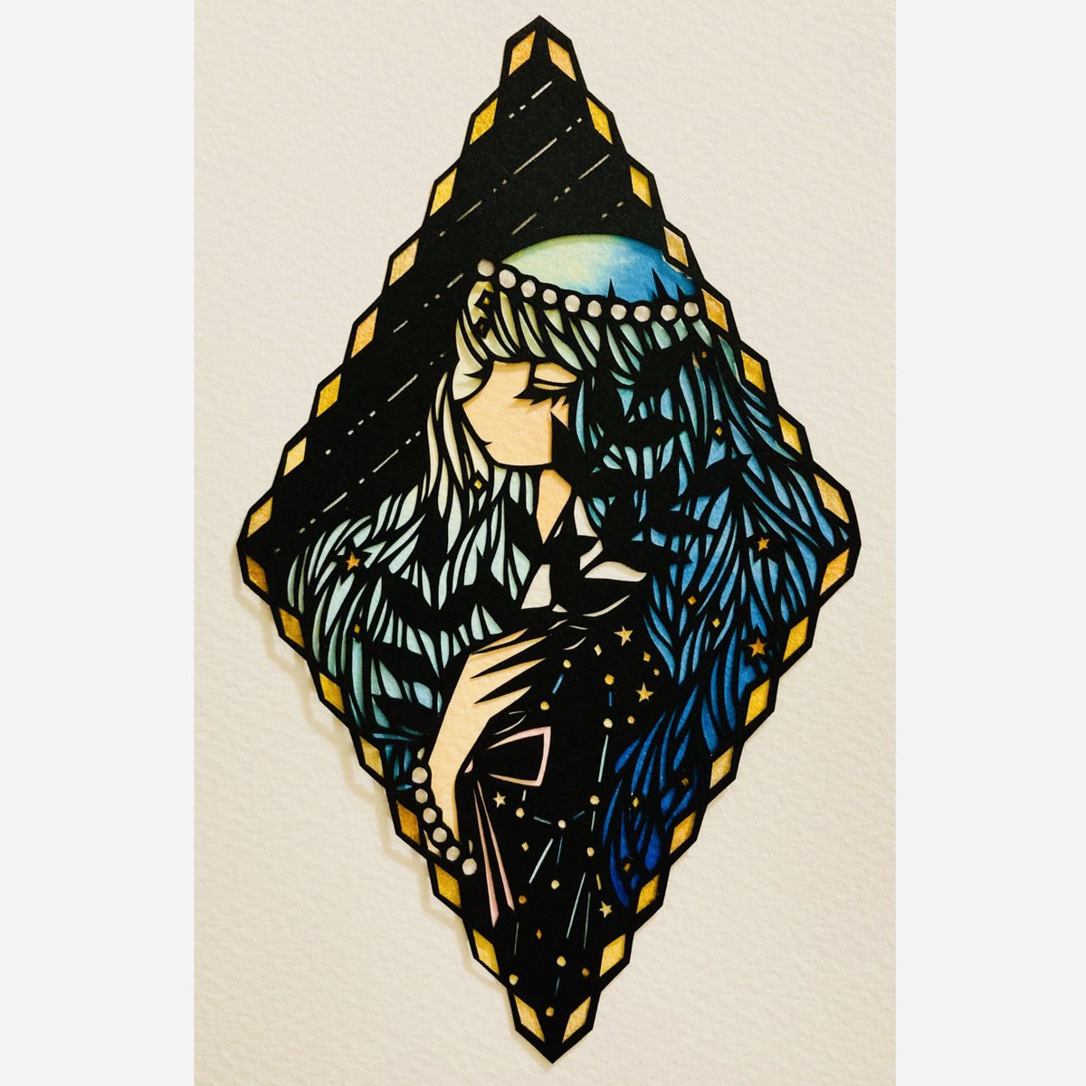 星屑カクテル✨ #切り絵 #透明水彩
