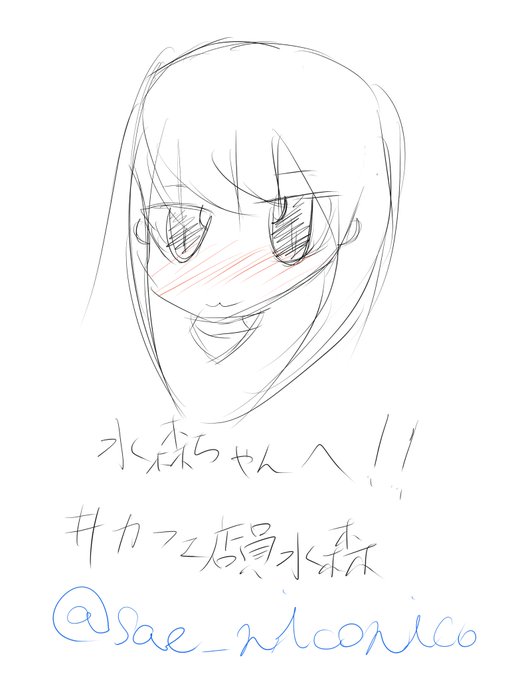 水森ちゃん(テレ顔Ver)描きましたᕙ( ˙꒳˙ )ᕗ #カフェ店員水森