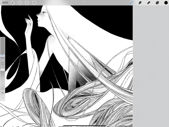 선에 꽂혀서 열심히 긋는중 그리다 보면 선 한줄이 세줄로 보이는 매직🤩