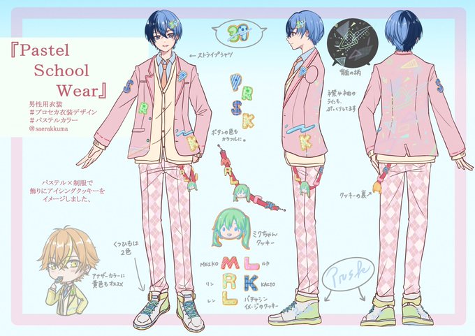 #プロセカ衣装デザイン #パステルカラー 男性用衣装『Pastel School Ware』 アイシングクッキーをイメージしました。 よろしくお願いいたします!