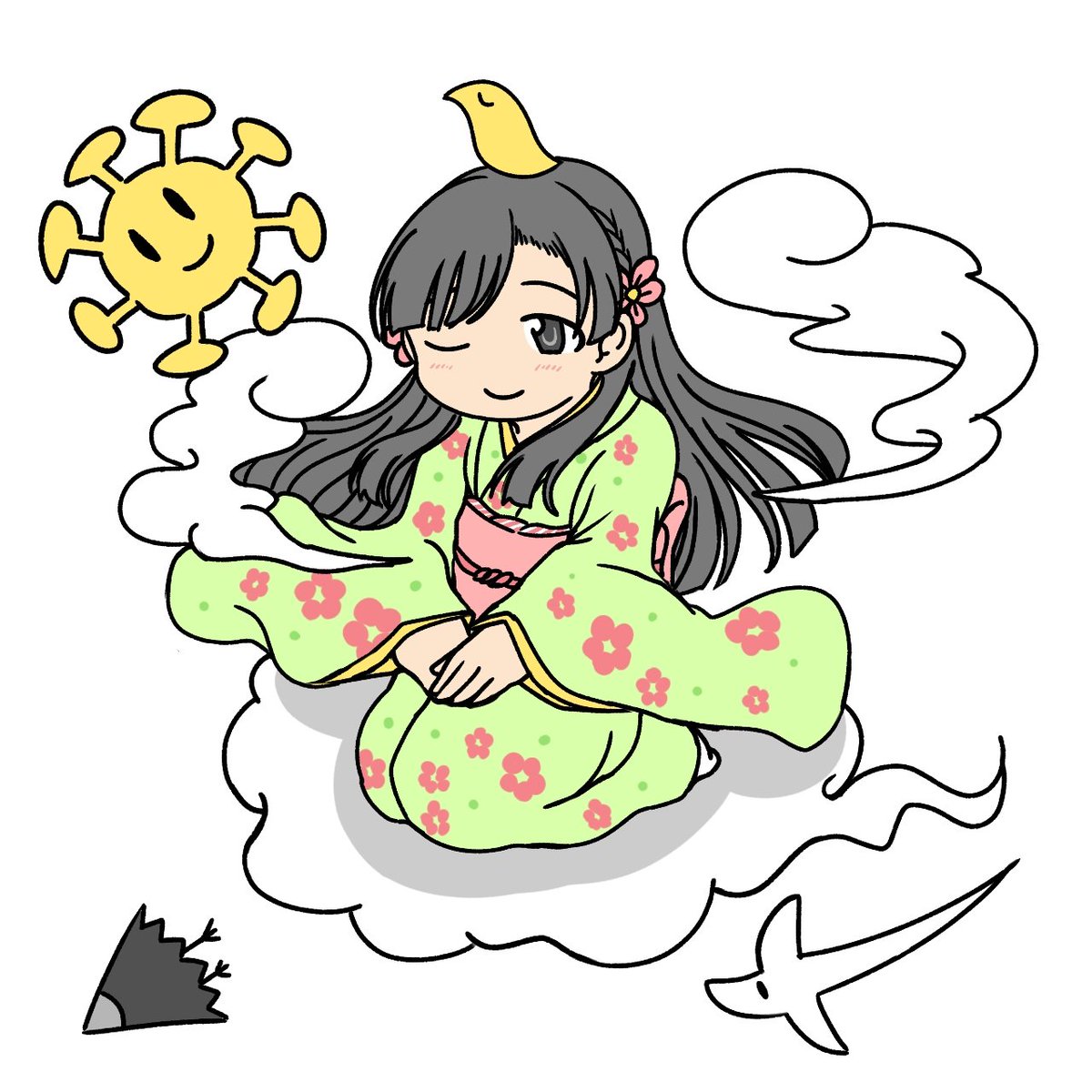 #少ない線でどれだけかわいく描けるか選手権 着物描けばなんとか紗枝はんって分かるのかな…?