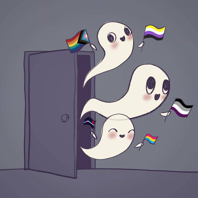 Day 11 - spooky bois brigade here wishing you a happy coming out day! Whether you’re out or not, you are worthy and you are loved! 💖👻🏳️🌈 #nationalcomingoutday #spooktober #spookybois #spookyboi #drawlloween #artober #queerartist #qtpocartist #queergho… instagr.am/p/CU6ui6JLRiR/