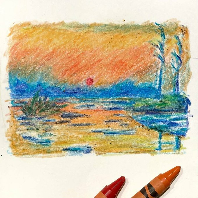 A mini Monet-esque with good old Crayola crayons 🖍 Trying to just play more. Try different things. Figure out what I like and what I’m good at. #impressionism #monet #crayola #crayons #queerartist #qtpocartist #crayolacrayons #quicksketch #minisk… instagr.am/p/CbO3mMwutKK/