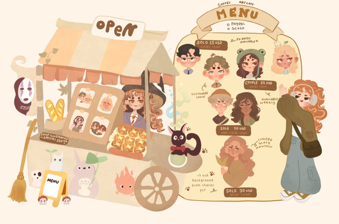 𝒔𝒂𝒇𝒇𝒆𝒊𝒂𝒓𝒕𝒄𝒂𝒇𝒆🐾 🥨🥖commissions open🥖🥨 pick your orders at the menu and message me directly for a slot tags 🏷 #artistsontwitter #PortfolioDay #acnh #Ghibli #art