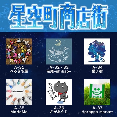 🌟デザインフェスタ出展します🌟 🌟ブース🌟A-31~37 🌟出展日🌟両日出展 🌟出展名🌟星空町商店街 ついにデザフェスの1列ぶんをジャックしちゃったよ!!(*´▽`*)✨人数多いのでタグ付けにしてます #デザフェス57 @designfesta 👇公式の出展者紹介ページこちら('ω')👇 designfesta.com/about-artist57…