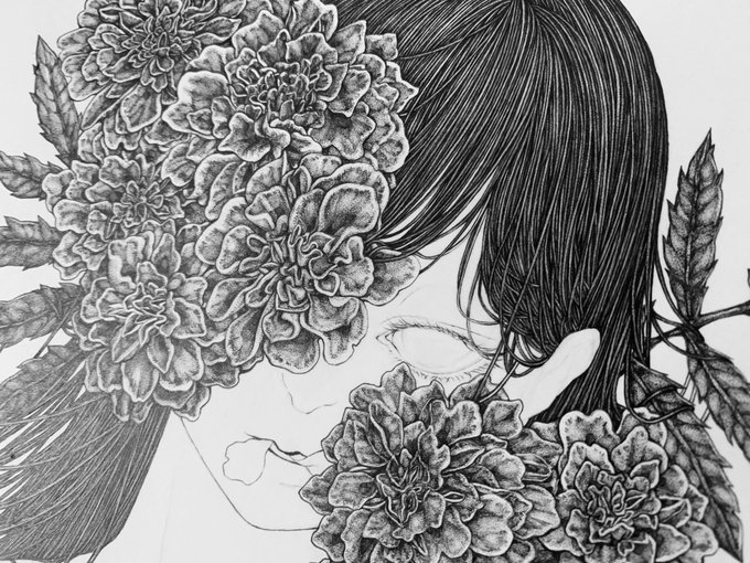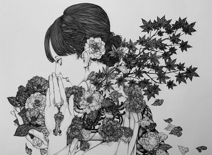 #秋の芸術アカウントフォロー祭 0.03㎜の点で花と女性と心を描いています、 秋分を境に新しい御縁に恵まれますように。