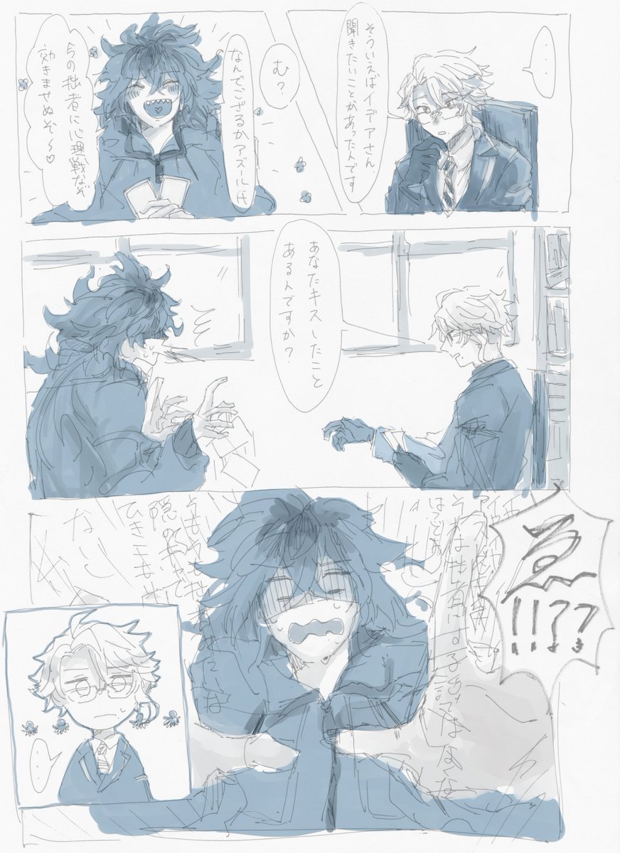 #イデアズ版深夜の60分一本勝負 お題:ファーストキス 今回も楽しく参加させていただきました。 大幅にオーバーしましたけど大ラフまでは1時間でやったので許してください(アウト)