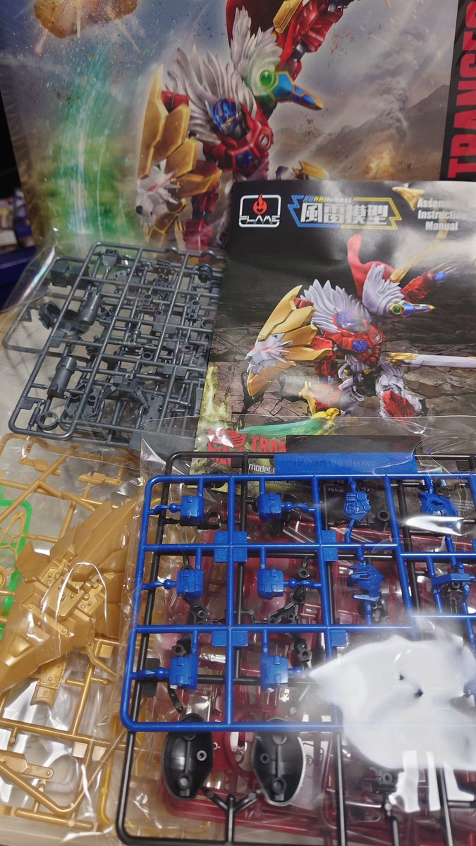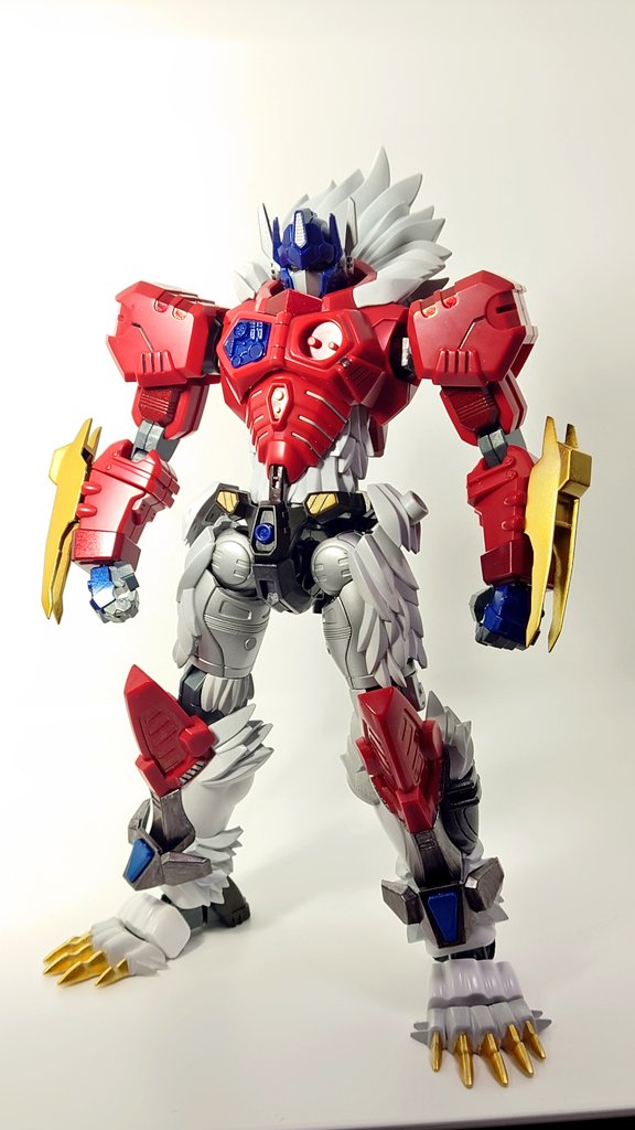 #風雷模型 のレオプライム! 爪先とキャノンくらいかな それ以外はほぼ色分けされてて 気合いを感じる 赤と白以外はメタリック成型色っぽいよ 金銀は塗装したいけど ぜんぶABSですって書いてあってどうしようか躊躇してます サフればダイジョブかな… #FLAMETOYS #トランスフォーマー