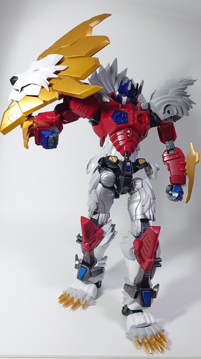 レオプライム やっとこ完成しました! 王の風格! ちょい塗りのつもりが 気付いたらだいぶ塗装してたw 金の鎖は手芸屋で買っといたやつ #FLAMETOYS #風雷模型 #レオプライム #トランスフォーマー