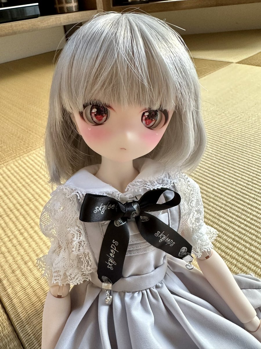 ふにゃほわ様の 「ロザリオの祈りドレス」と 「バンビーナボブウィッグ」にお着替え 愛梨が天使に💕 #ふにゃほわ服 #MDDはいいぞ #うちのこかわいい