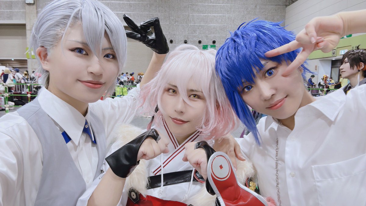 インテ撤退してました!てるさんみのさんと3人でサークル参加でした🤍🩷🩵各々が好きなもの作って頒布するのは楽しい…✊コススペではマスク外したけど、スペースではずっとマスク着けてたからあつかった😂涼しい時ははなちさんも一緒に🥺!!!
