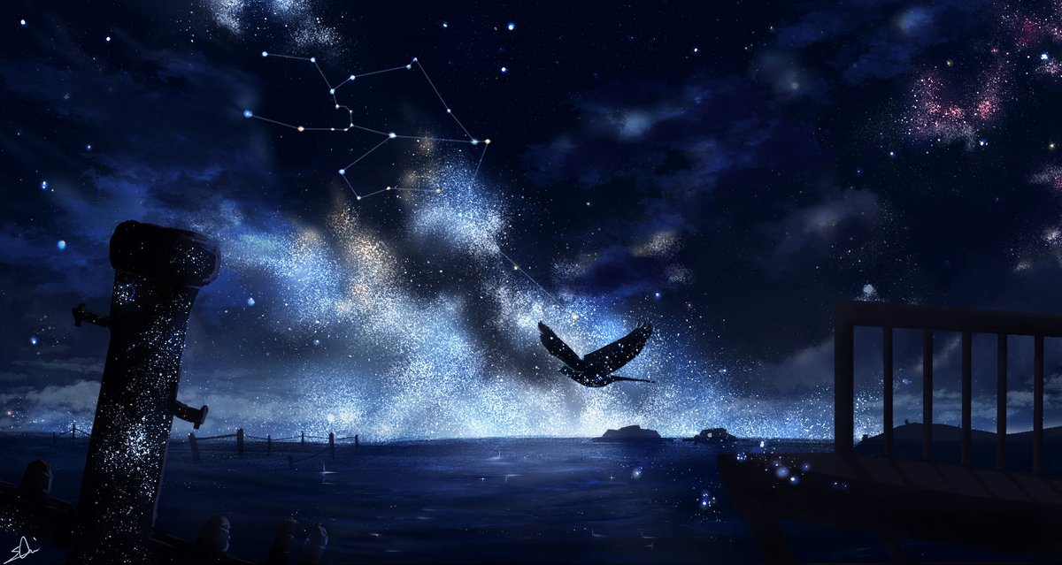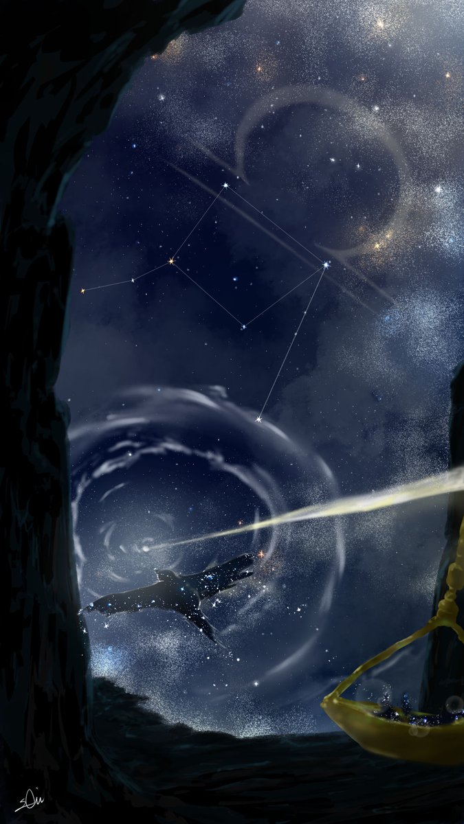 通行料 羽三枚。 #イラスト #創作イラ #星座 #絵描きさんと繫がりたい