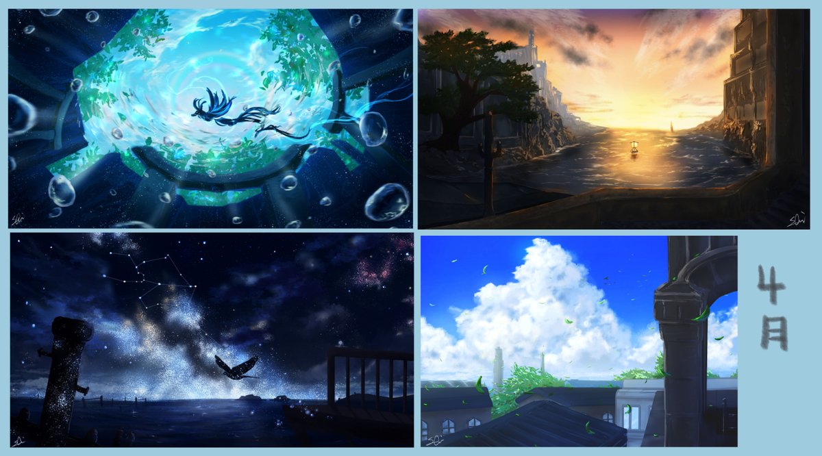 #今月描いた絵を晒す 今月というか先月ですが・・! 4枚です。週1枚描けてるみたいです。 今月も週1枚は描き上げていきたいところ。