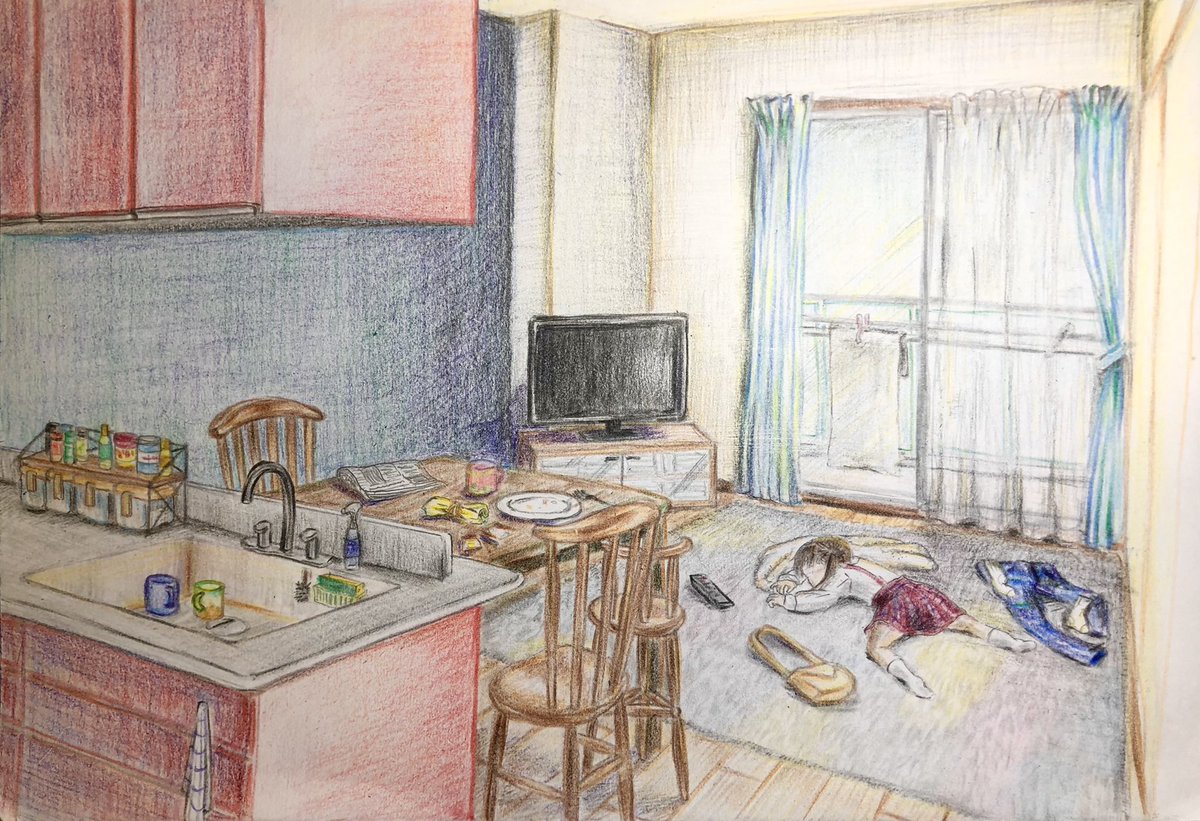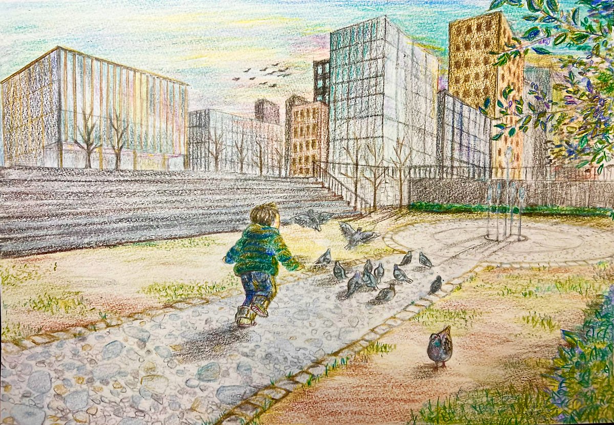 #画像を4枚晒したらrtがきてフォロワーがぶわーって増えると聞いて #イラスト #イラスト好きな人と繋がりたい #アナログ画 作品が少したまったのでまとめてみました!クーピー使って子供の風景画描いてます☺️