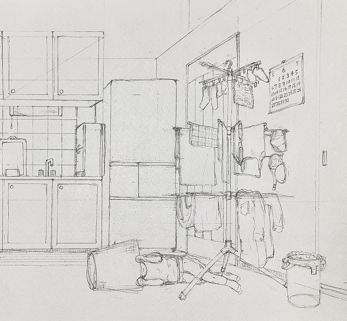 洗濯カゴ三景〜③〜 籠城 洗濯カゴシリーズついに完結します!😆 まずは下書きです。 #イラスト #イラスト好きさんと繋がりたい #絵描きさんと繋がりたい #子供 #オリキャラは性癖の見本市